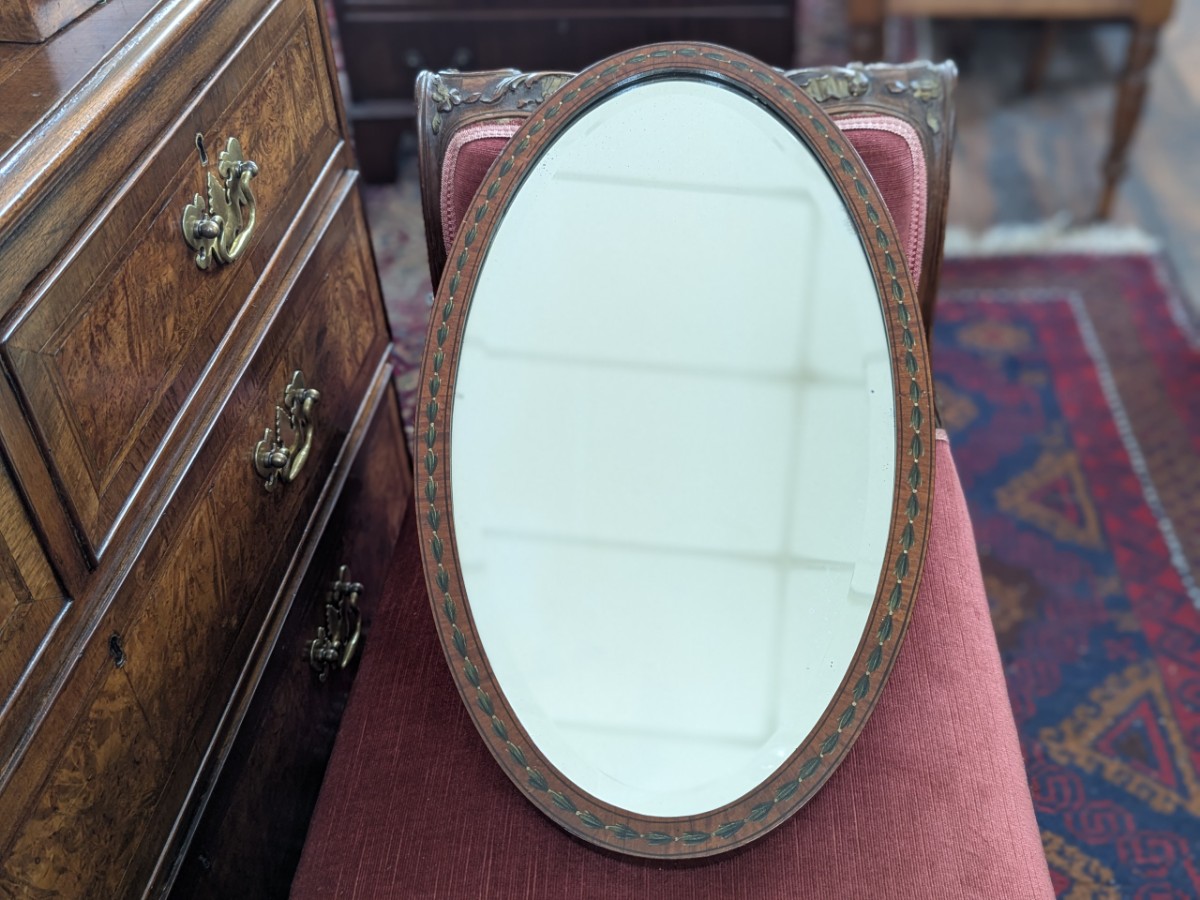 • Late Victorian Oval Satinwood Framed Wall Mirror
