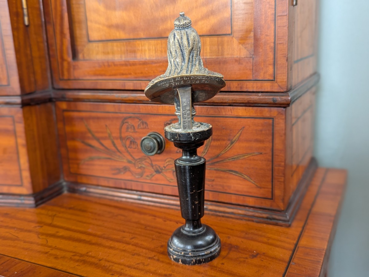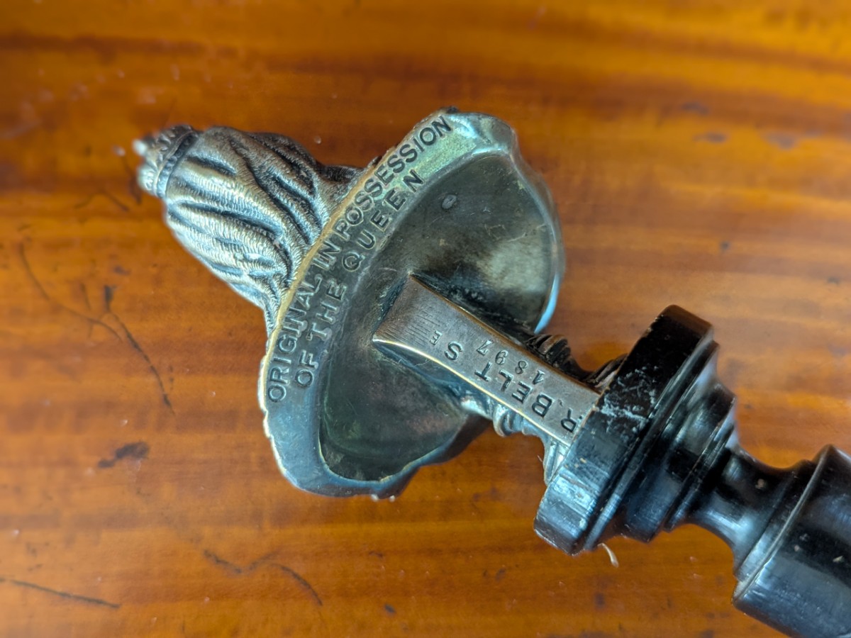 Silvered bronze royal commemorative bust of Queen Victoria (1897), on turned wood pedestal. Height 7''.